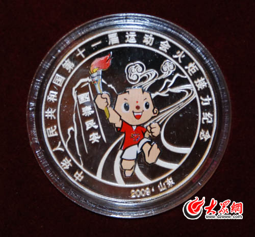 十一運“火炬接力紀念章”銀幣 (本網記者曹亮攝)