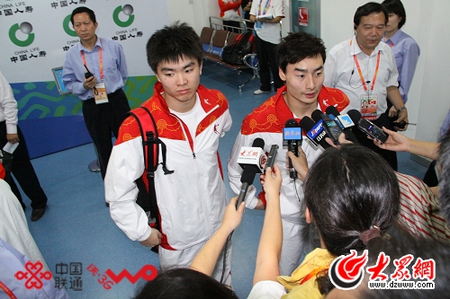 比賽后,秦凱和張森在混合采訪區被記者團團圍住(右為秦凱)