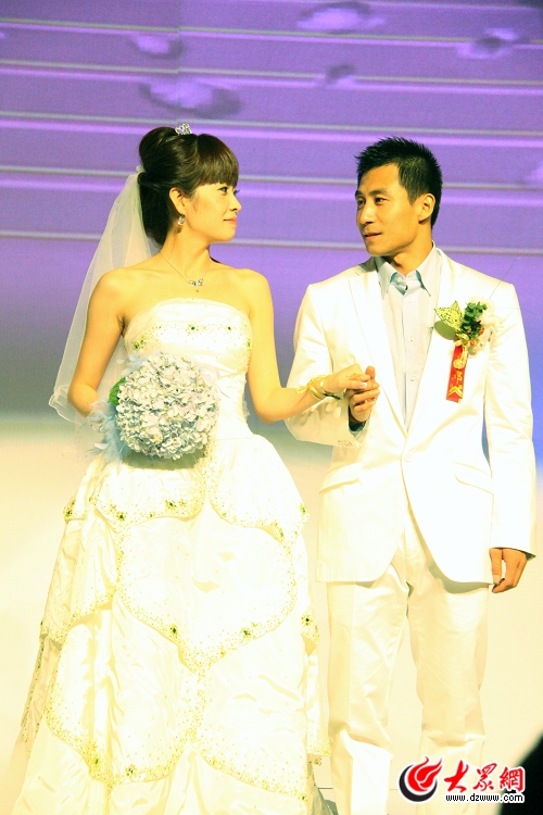 大眾網(wǎng)10月13日訊(記者 隋喬 趙爾印 燕雨)今天上午,在全運(yùn)會(huì)男子1米板跳水決賽中摘金的跳水名將王峰迎來了人生中的另一個(gè)幸福時(shí)刻,他與相戀六年的新娘王丹攜手走進(jìn)了婚姻的殿堂。10點(diǎn)58分,浪漫溫馨的婚禮準(zhǔn)時(shí)在山東大廈舉行,王峰身著白色禮服攜一身白紗的美麗新娘踏上紅地毯。