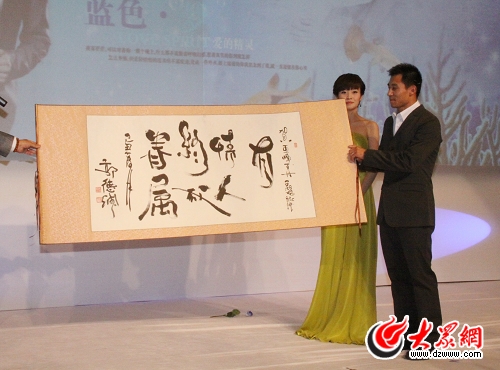 婚禮儀式進(jìn)行到最后,主持人向賓客們宣布:“來自北京的一位姓郭的大腕贈(zèng)上一份禮物!贝蠹荫R上對這名神秘人物議論紛紛:“晶晶?是郭晶晶嗎?”主持人賣了個(gè)關(guān)子:“他贈(zèng)上一幅字,上書:有情人終成眷屬。落款是:郭德綱!北娰e客馬上了然,有感于郭德綱書法底蘊(yùn)不錯(cuò)的同時(shí),也因郭晶晶未在婚禮現(xiàn)身而遺憾。
