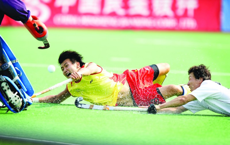 本刊濟南10月28日訊 10月28 日上午,十一運會男子曲棍球比賽在山東省體育局訓練中心曲棍球場正式結束。本次比賽自10月20日開始,至28日結束,共進行了29 場比賽,是本屆全運會決出的倒數第二枚金牌。在決賽中,遼寧隊在落后一分的情況下上演了大逆轉,最終3:1戰勝內蒙古隊,衛冕成功。內蒙古隊獲得亞軍,甘肅隊獲得第三名。