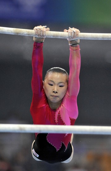 高低杠比賽中,第一個上場的是浙江小將何寧。由于從杠上跌落一次,最后落地時又險些跪地,何寧僅得到12.300的分數。接下來上場的是上海隊譚思欣,瀟灑利落的做完整套動作,譚思欣拿到14.275分。第三個出場的是在昨天剛剛拿到女子全能銀牌的楊伊琳,盡管在落地時出現了一點失誤,但漂亮舒展的動作使她仍拿到14.700的高分。接下來出場的分別是貴州的楊紅茜和廣東的吳柳芳,憑借穩定的發揮,她們分別拿到14.075分和14.650分。浙江隊江鈺源第六個出場,穩穩的落地獲得滿堂喝彩,贏得14.275分。第七個出場的是北京奧運高低杠項目冠軍何可欣。沉著穩定的何可欣精彩的完成了自己的成套動作,結果她得到了15.950分,也是本場比賽中得分唯一超過15分的選手。最后一個上場的選手是上海隊的肖康君 ,她異常穩定的完成了自己的成套,但是由于難度上的劣勢,無法與強手抗衡,最終得到了14.275分,和她的隊友譚思欣并列第四。最終,高低杠公主何可欣毫無懸念的獲得了高低杠比賽的金牌,而廣東選手楊伊琳和吳柳芳分獲二三名。