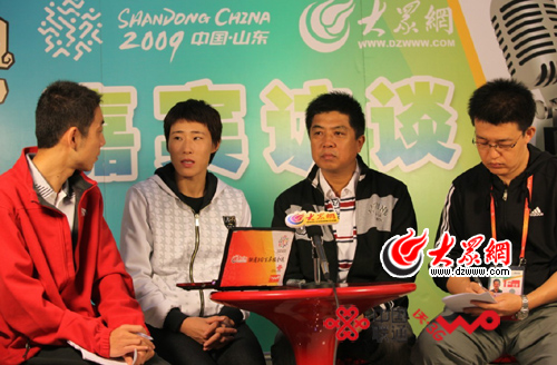 大眾網-山東聯通3G聯合報道(記者 馮煒程 趙新婷 趙洪棟) “這屆全運會的比賽,對我來說,是做到了不完美的完美。”黃瀟瀟說。10月22日,女子400米的決賽中,東道主山東代表團的黃瀟瀟以52秒23蟬聯該項目冠軍;25日,當整個奧體中心體育場都沉浸在對劉翔的期待中,黃瀟瀟400米欄奪冠后一句“這個夜晚不只屬于劉翔,還屬于我們每個運動員”,又感動和征服了所有的人;僅僅一天之后的26日晚上,黃瀟瀟向她的第三金發起沖擊,但是,女子4×400米接力決賽中,最后時刻,黃瀟瀟被廣東隊陳靜文追上,僅以0.01秒之差憾摘銀牌。10月27日上午,黃瀟瀟和她的教練張增惠來到齊魯晚報、大眾網《常回家看看》奧體中心直播間,收獲兩金一銀的黃瀟瀟用“不完美的完美”總結了她的本屆全運之旅。