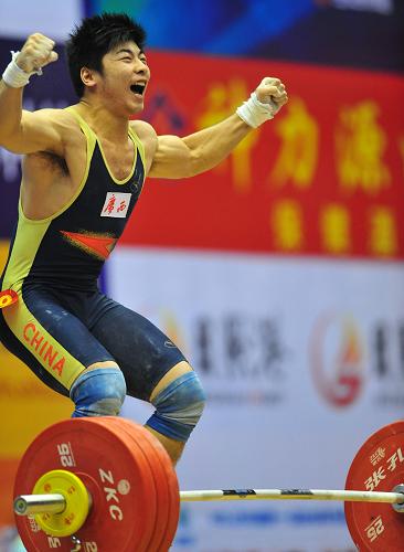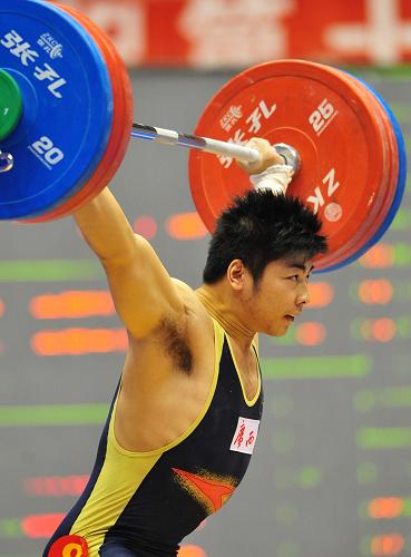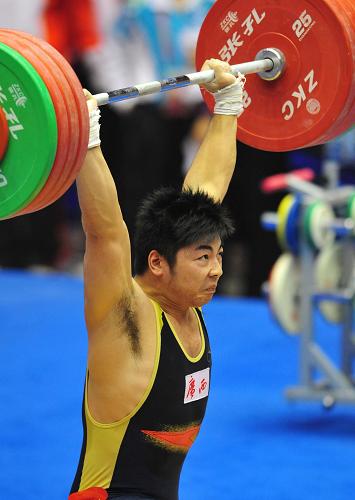 10月25日,陸永在比賽中。當(dāng)日,在第十一屆全運(yùn)會舉重男子85公斤級比賽中,廣西隊(duì)選手陸永以376公斤的總成績獲得冠軍。