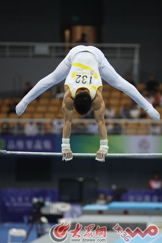 大眾網-山東聯通3G聯合報道(記者 明清 新婷 爾印 隋喬 洪棟)第十一屆全運會體操項目的比賽完美謝幕。最后一輪舉行的是男子單杠項目的比賽,經過激烈的較量, 北京奧運冠軍鄒凱憑借完美的發揮登上冠軍寶座,斬獲金牌,郭偉陽屈居亞軍,呂君海獲得季軍。