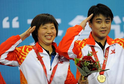在今晚進行的十一運乒乓球混雙決賽中,解放軍隊的王皓/文佳組合,在1:3落后的情況下連勝三局,4:3擊敗遼寧選手翟一鳴/常晨晨,獲得混雙金牌。