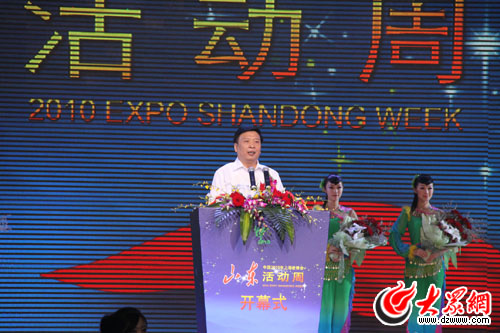 10點20分,山東省委副書記、省長姜大明走上臺宣布:上海世博會山東活動周開幕!