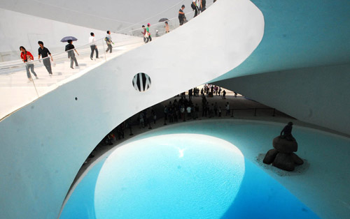 港澳展館,與大紅外表、斗拱造型的中國館相輝映。或俯或仰,移步換景,這里是眾多攝影愛好者的最愛。