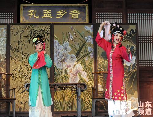 7月9日,來自山東省呂劇院的演員在表演呂劇《姊妹易嫁》。