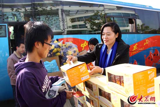 濟(jì)南蒙牛乳業(yè)工作人員為學(xué)子獻(xiàn)上牛奶一箱