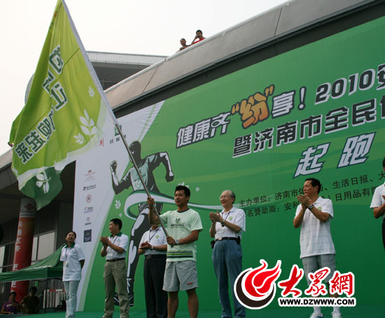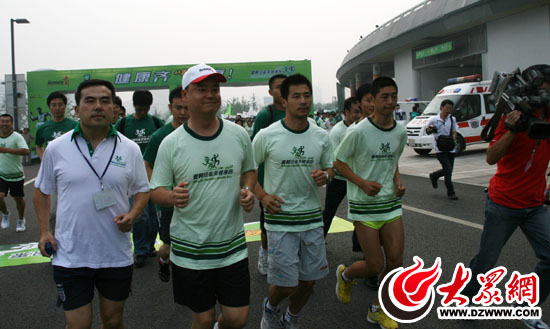 大眾網(wǎng)副總編輯姜長勇、安利(中國)日用品有限公司山東分公司總監(jiān)王海軍等領(lǐng)導(dǎo)與奧運跳水冠軍王峰共同領(lǐng)跑