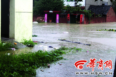 晚7時13分,迅速上漲的洪水淹了心石村 連日來安康市大部分縣區遭遇強降雨天氣。18日下午4時許,安康市區響起了防洪警報。隨后,安康境內地勢低洼的東壩地區被水淹沒,有市民表示,這種情況只在2005年洪水時發生過。記者18日晚11時發稿時,降雨仍在繼續,安康城區內也不時響起警報聲……安康市防汛抗旱指揮部表示,安康市漢江防汛形勢異常嚴峻,已全面進入緊急狀態。