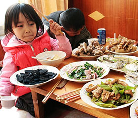 >在年夜飯引發集中消費的同時,一些酒店借助春節喜慶氣氛,推出各種名稱的菜品,如,將炒合菜改名為“合家歡”,嘎肉蒸雞蛋改為“虎到福到”,爆炒魷魚改為“年年有余”…… >在省城較受歡迎的酒店,年夜飯“一桌難求”。為此,有商家增加了“半成品年夜飯”的外賣,更有酒店嘗試推出了被業內人士稱為“年午飯”“年午后飯”的宴席以饗食客。并且大受歡迎。有消費者表示,選擇在中午或者下午吃團圓飯有利于晚上陪家人看春晚。餐飲行業從業者表示,不少消費者改在年三十中午吃“年午飯”,說明大家的消費觀念正在改變。商家和消費者可以各取所需,長遠來看,“年午飯”會是一個趨勢。