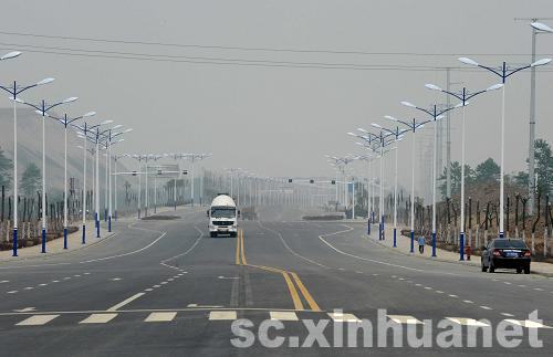 這是由江蘇省援建的四川省綿竹市開發(fā)區(qū)道路(4月30日攝)。