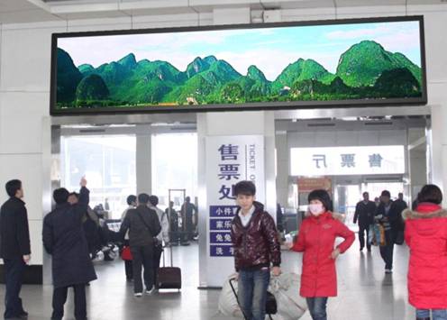 長(zhǎng)途汽車總站售票大廳LED大屏幕實(shí)景圖