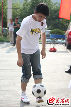 冠軍王成龍在顛球大賽中一路過五關斬六將(曹亮 攝)