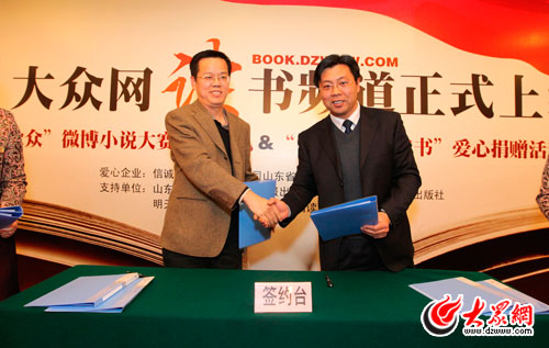 大眾網(wǎng)副總編輯曲濤與齊魯書社副總編輯昝亮簽約