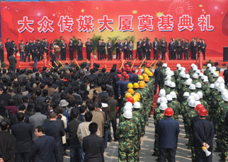 初春的濟南,陽光明媚,花紅柳綠。今天,在千佛山下,黑虎泉畔,由大眾報業集團出資建設的大眾傳媒大廈奠基典禮隆重舉行。