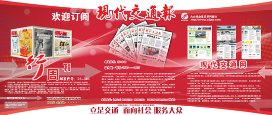 《現代交通報》是大眾報業集團主辦,面向山東交通系統的一份行業機關報,是省市縣各級交通系統領導干部必備的指導性讀物。《現代交通報》以“關注人車路 服務大交通”為理念,以服務于交通系統廣大干部職工為辦報宗旨,融新聞性、政治性、知識性、實用性為一體,在宣傳黨和政府在交通領域的大政方針,反應交通系統基層工作,描繪交通人喜怒哀樂,為社會大眾提供實用的交通信息等方面具有獨特的優勢。