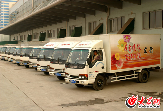 報紙運輸車輛整裝待發
