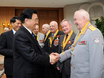 胡錦濤向俄老戰士...