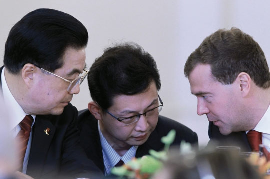今年4月15日,胡錦濤在巴西利亞出席“金磚四國”領(lǐng)導人第二次正式會晤期間會見了梅德韋杰夫。雙方就中俄關(guān)系及重大國際和地區(qū)問題深入交換了意見,一致同意共同推動中俄戰(zhàn)略協(xié)作伙伴關(guān)系向前發(fā)展。