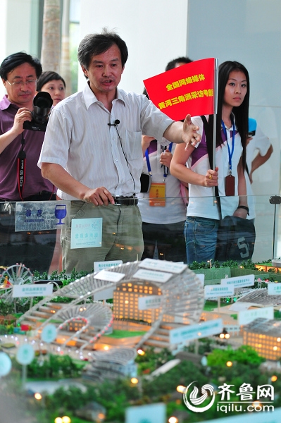 20日下午,在中國太陽谷沙盤前,被譽為“中國太陽能之父”的皇明太陽能集團董事長黃鳴向記者介紹中國太陽谷的建設情況。據悉,今年9月,主題為“太陽能改變生活”的第四屆世界太陽城大會將在德州市舉行。(攝影 張曉博)