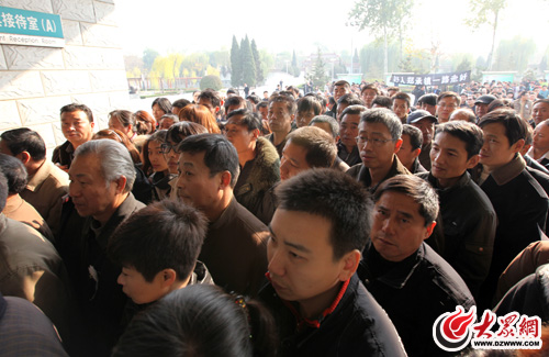 社會各界近千名群眾自發組織起來為鄭承鎮送別。濟南市相關部門領導在遺體告別儀式以前,組織了簡短的悼念儀式。(曹亮 攝)