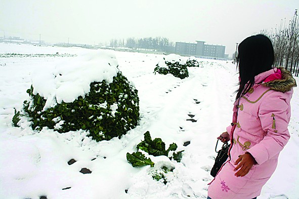 12日省城經歷了入冬以來的第一場暴雪,這場雪給唐王鎮的3000多畝白菜帶來了不小的影響。記者在唐王鎮采訪時了解到,那里大部分白菜還都留在菜地里 ,因雪大來不及收。大雪過后,現在菜地里的白菜還沒有凍壞,口感還不錯,但隨著雪的融化和氣溫的降低,唐王鎮白菜面臨因凍災絕產的危險。