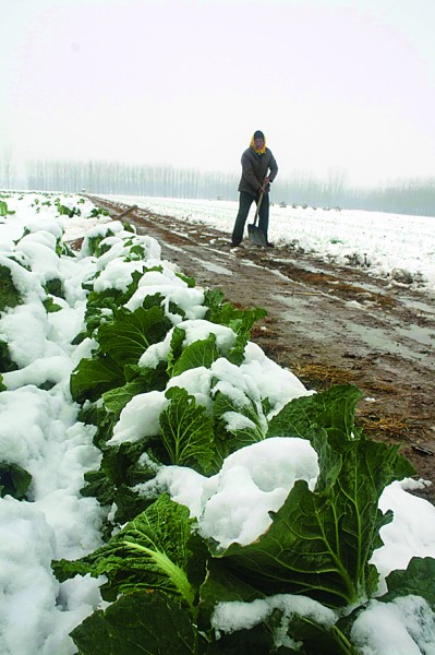 “這場雪來得早了點,下得又大又急,把菜農打了個措手不及!惫ぷ魅藛T鄒永洲說,現在氣溫突然降低,白菜面臨凍災,集中上市面臨著不小的銷售困難。