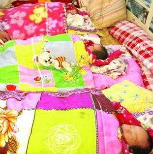 在陶華江姨媽家記者看到,院子里掛滿了剛洗完的尿布,陶華江正在給孩子收拾晾干了的尿布。見到記者到來,陶華江立即起身迎上來,強擠出一絲笑意示意讓記者進屋,記者注意到這位曾經(jīng)當了5年武警的硬漢,眼圈依然通紅,顯然還沒有從痛失愛妻的悲慟中走出來。在陶華江的指引下,記者在西側(cè)的房間里看到了三胞胎姐妹,三個小家伙齊刷刷的躺在炕上,小嘴不停地蠕動著,好像要跟記者說些什么,由于孩子屬于早產(chǎn)兒,現(xiàn)在的身體狀況還很虛弱,記者生怕孩子受到感染沒有進入孩子房間里,只隔著房間探視了一下孩子。“孩子現(xiàn)在的狀況還可以,沒有人打擾的情況下都很聽話,可是不知道為什么,孩子只要一聽到相機的拍照聲就會哇哇大哭,餓了的時候也會哭,她們現(xiàn)在每天都會喝掉大半包奶粉,可能是身體需要,孩子們很能吃,這一點我心里還感覺到很欣慰,只要孩子身體好,能夠健康成長我就放心了,也能對得起孩子的媽媽了……”陶華江流著眼淚悲傷的對記者說。