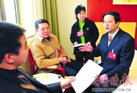 17日下午,幾位人大代表在討論“孤島”小區供暖問題。 邱志強 攝