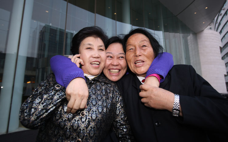 3月6日,全國人大代表郭鳳蓮與全國人大代表申紀蘭及前來北京參加婦女節大會的山西女企業家丁書苗擁抱在一起。 郭鳳蓮和申紀蘭、才旦卓瑪、邢燕子、玉榮......都是新中國成立以來人們心中響當當的巾幗代表。2010年兩會期間恰逢婦女節100周年,正在北京出席十一屆全國人大三次會議的全國人大代表郭鳳蓮與前來出席“紀念三八國際勞動婦女節100周年大會”的姐妹們相聚在一起,喜悅之情,溢于言表。新華社記者 陳建力 攝