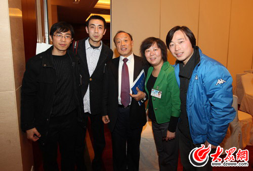 前外交部長、十一屆全國人大三次會議發言人李肇星與大眾網記者合影留念