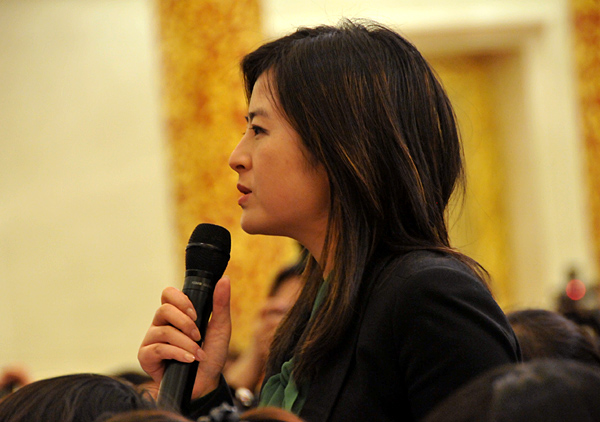 2010年3月14日,十一屆全國人大三次會議在京閉幕。國務院總理溫家寶在閉幕會后會見中外記者。圖為中央電視臺記者提問。翟子赫 攝