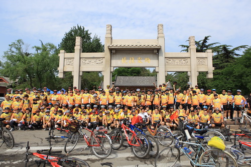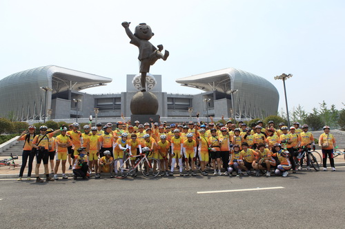 騎行隊(duì)伍奧體留影,向章丘進(jìn)發(fā)