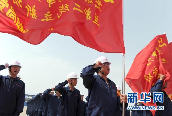 6月26日,參加創先爭優的中國中鐵四局黨員代表進行創先爭優宣誓。新華社記者王雷攝