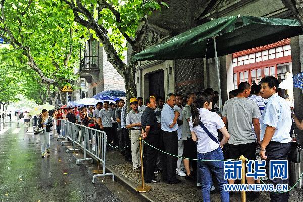 6月27日,游客排隊(duì)參觀中共一大會(huì)址紀(jì)念館!捌咭弧奔磳⒌絹恚虾V泄惨淮髸(huì)址紀(jì)念館游人如織。新華社發(fā)(郭長耀 攝)