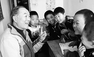這是一次特殊的采訪,記者只能借助“翻譯”與這位古稀老人和一群孩子溝通。