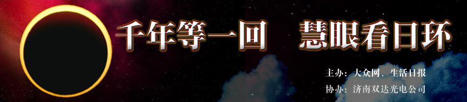 “媽媽,太陽被月亮吃了”今天下午,千年不遇的日環食如期現身濟南。記者在位于省城解放路的濟南雙達光電有限公司觀測點看到,很多市民冒寒過來觀看日環食。一位剛剛放學的小朋友看到日環食后大喊:“媽媽快看,太陽被月亮吃了”。 >>更多 周五太陽帶食而落 北京可觀日偏食此次環食帶我國東部地區只能看到帶食日落,北京處于偏食帶,只能看到日偏食,但觀測效果要好于去年。 >>更多 臺灣民眾15晚可觀賞日偏食天象十五日傍晚將發生本世紀環食時間最長的日環食天象,由于角度問題,臺灣地區僅能看見食分零點六五五的日偏食前半段過程。 >>更多 成都市民15日可欣賞到近3小時日偏食成都的日偏食初虧從15日15時17分開始,在16時48分達到食甚,到18時6分復圓,歷時近3個小時。>>更多 |