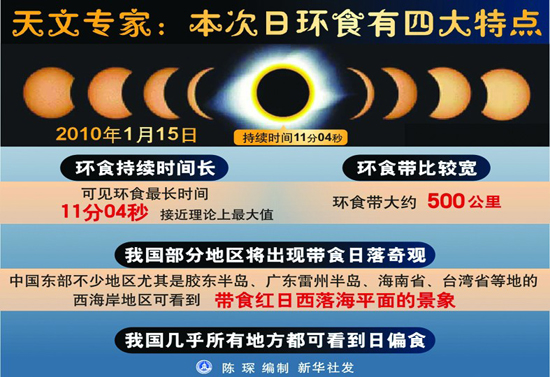 天文教育專家、天津市天文學(xué)會(huì)理事趙之珩提醒說(shuō),此次日環(huán)食有三大看點(diǎn)值得期待。
