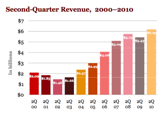 該報(bào)告還披露了以下數(shù)據(jù)(所有數(shù)字均為2010年上半年數(shù)字):