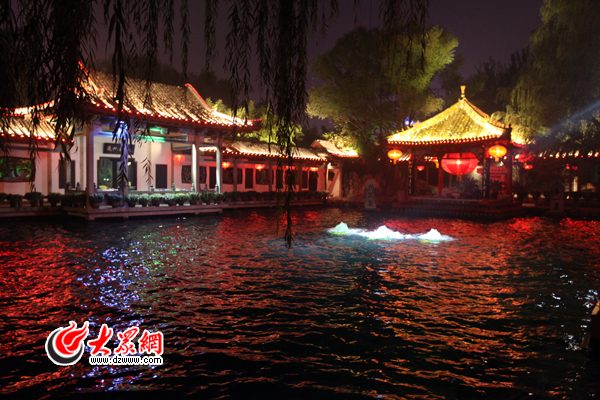 媒體行采訪團夜觀趵突泉 贊嘆濟南保泉得力