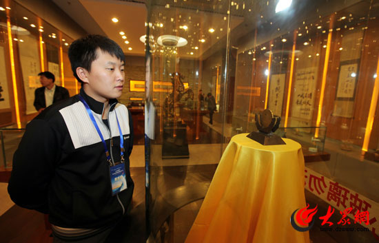 采訪團記者瀏覽張裕酒文化博物館內(nèi)的獎?wù)隆?/P>