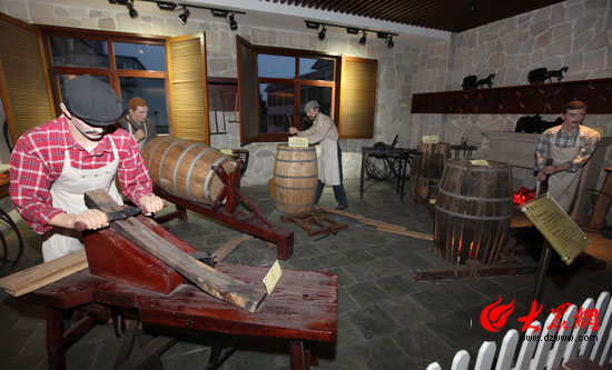 張裕酒文化博物館中實景展示橡木桶制作。