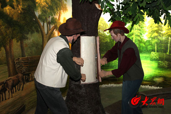 張裕酒文化博物館中實景展示葡萄酒軟木塞制作。