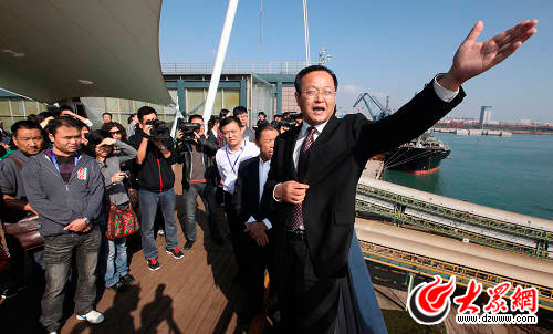 網(wǎng)絡(luò)媒體記者采訪日照港。大眾網(wǎng)記者 曹亮 攝