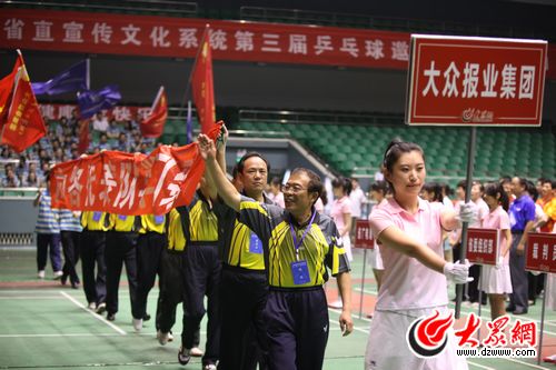 大眾網濟南6月12日訊 (記者 吳哲 曹亮 韋輝 實習生 宋瑜)由省委宣傳部主辦,大眾報業集團(大眾日報社)承辦的“大眾網杯”省直宣傳文化系統第三屆乒乓球邀請賽,今天在山東省體育中心體育館拉開戰幕。來自省直文化宣傳系統12個單位的150多名運動員將同場競技,角逐團體、女單、男單甲、乙、丙共五個單項的冠軍榮耀。