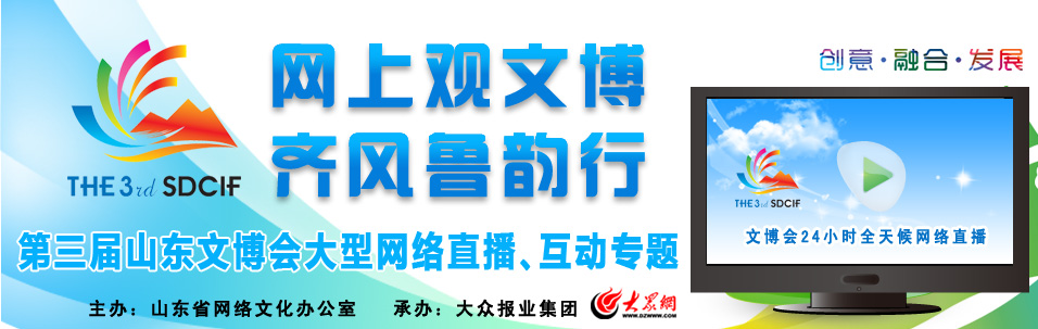 ·章丘館是山東唯一一個進駐文博會的縣級市。不足27平米的展廳設計精致,擺滿了特色文化產業展品。龍山黑陶精品得到好評。 ·省城13萬人昨天參觀了文博會,其中濟南國際會展中心10萬人,舜耕國際會展中心3萬人。 ·文博會現場簽約項目之一--章丘錦屏山影視基地項目擬投資3億元,計劃在三年內建成一座具有中華文明特色的“東方影視城”。目前該基地已拍攝了六部電視劇。 ·今天下午,山東文博會濟南項目簽約儀式在濟南國際會展中心舉行。濟南現場簽約文化產業項目達到15個,包括章丘錦屏山影視基地、山東世紀金榜文化產業園、弘揚動漫項目等,投資總額145.2億元人民幣,融資總額89.1億元。 ·濟南國際會展中心一層E區的數字動漫展示館,憨態可掬的各種機器人,大屏幕上的原創動畫片,3D版網上世博山東體驗館……牢牢地吸引了觀眾的眼球。“網上看世博”大屏幕上展示著世博會山東館的場景,讓人身臨其境。幾個真人裝扮的泰山娃玩偶擔任網上世博山東館的模擬導游,憨態可掬。 ·山東文博會今天將在濟南國際會展中心開幕,30日閉幕。本屆文博會設“八館七區”,展示交易的內容涵蓋了傳媒、廣播影視、圖書音像、文物與民間藝術、書法美術、動漫與信息技術、旅游休閑等多個方面。