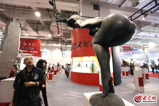 本屆文博會(huì)上,一具銅塑藝術(shù)大膽創(chuàng)作,人物形象線條明晰,神情惟妙,吸引眾多觀眾駐足觀看。